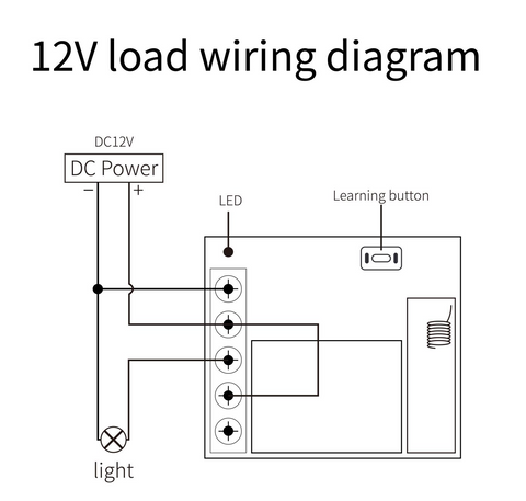(Tempo di ritardo: premere il pulsante di apprendimento sul ricevitore 4 volte, ritardare 5S per spegnere il relè corrispondente; premere 5 volte per 10 secondi, premere 6 volte per 15 secondi, premere 7 volte per 20 secondi)