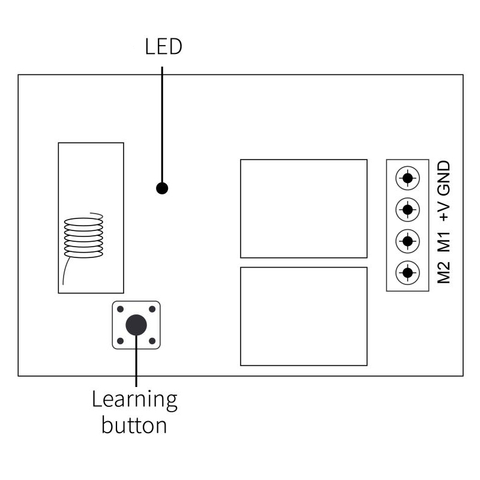 Después de presionar el botón de aprendizaje del receptor 8 veces, el receptor borrará todos los datos del control remoto en su memoria. Cuando el LED del receptor parpadea, la función de reinicio está completa.